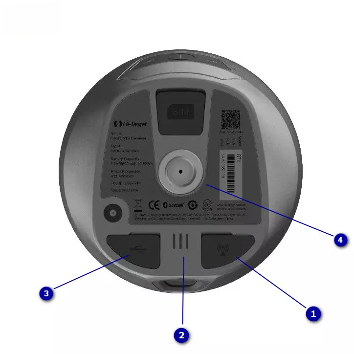 Máy GPS 2 tần số RTK Hi-Target vRTK thiết kế 2 camera kép ở phần mặt trước và phần dưới của máy. Ngoài ra, thiết bị có thiết kế với nhiều cổng giao tiếp trên thân máy và được bố trí như sau: