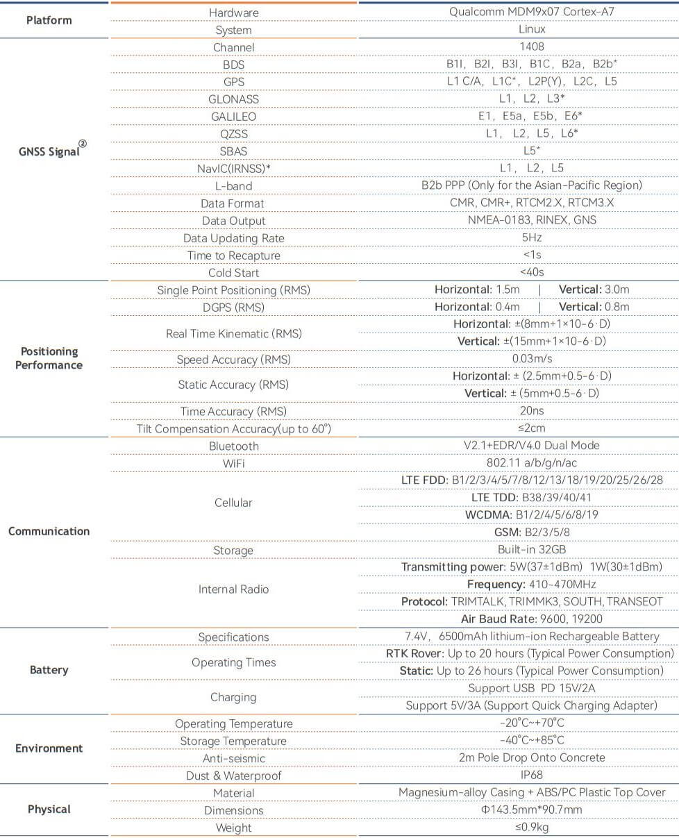 | Định dạng dữ liệu | CMR, CMR+, RTCM2.X, RTCM3.X | |