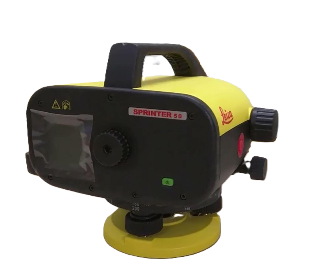 – Máy thủy bình điện tử Leica Sprinter 50 đo và hiện số đọc độ cao mm và khoảng cách đến mm (độ chính xác khoảng cách cm).